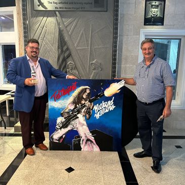 This was a last-minute addition, 2 months before the show, they announced Ted Nugent would be preforming and ask for a special request. of his "Weekend Warrior" album and we had fun turning into a larger-than-life record album including the vinyl. This piece now hanging in Sams house was purchase by a fan for $1,000 to top off the end of the night.
