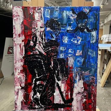 We were honored we Hockey 4 life reached out to us to say that we were part of 6 organizations Hockey 4 Life was raising funds for. Then they asked us for a raffle piece, and of course we were excited to help. We created a 2 piece hockey set that in total for bot 16inch x 20 inch artworks raise a combined total of $900 for all 6 charities involved.