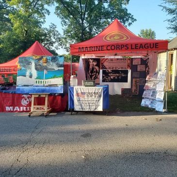 We have a great relationship with all of our military, especially our Marine Leagues. That includes our partnership at the Plymouth, IN Blueberry Festival. Always right next to each other. We have partnered to raffle off a special painting to raise money for both the League and Treu Top 1% Foundation. Sept 2023, we raise $2,000 for this painting alone.