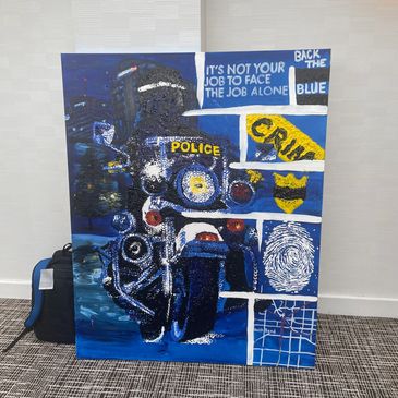 This piece raised $600 for the Midwest Gang Conference that was held at the Double Tree in South Bend, IN that was hosted by the SBPD. With the A4V Fundraiser for a Fundraiser we are always excited to help all of our Heroes and First Responders. This was the first of a kind that I got to get fully creative with a piece, JR mentioned.